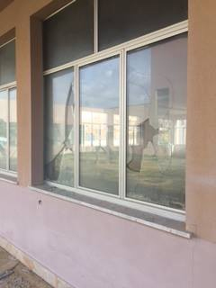 6- Vetrate letteralmente sfondate a causa dei vandali;